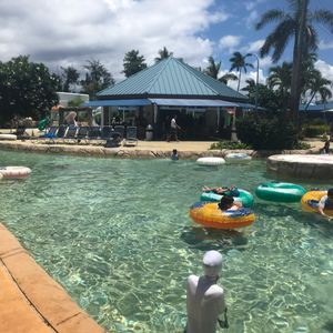 スライダーやマンタが待ち時間ほぼなしですいすい乗れます!流れるプールはプール全体を通っていて、浮き輪がたくさん浮いてて移動にも使えます!