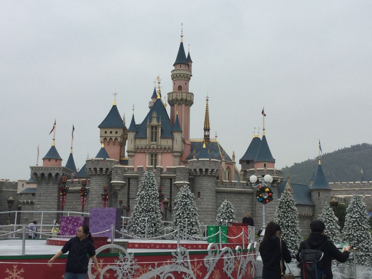 眠れる森の女王の城前のクリスマスショーも始まってからでも近くで見れました。東京と違い、ランドにもダフィーやジェラトーニなどがショーに参加していて、華やかでした。