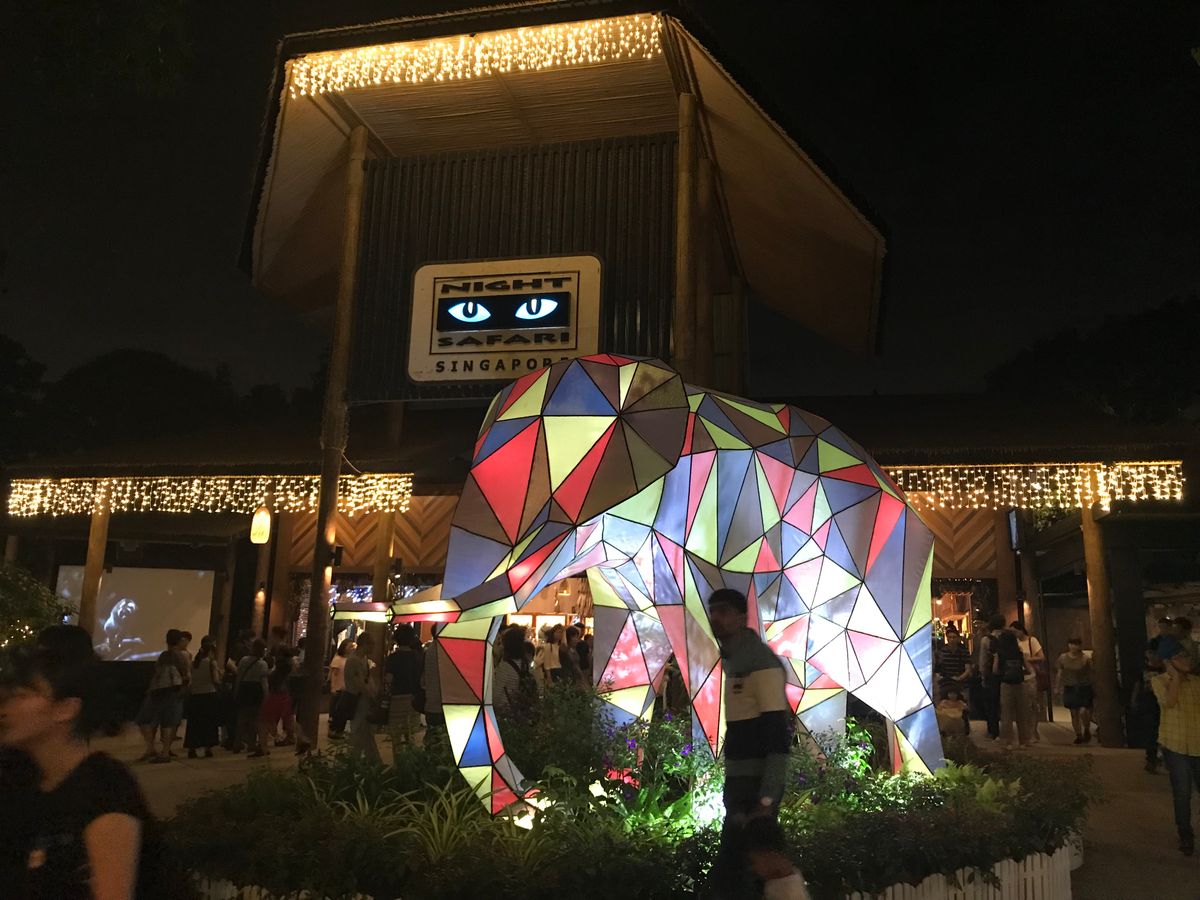 指定ホテルで、定刻通りにピックアップしてもらい、30分程でナイトサファリへ到着。連日の雨でしたが、催行日は雨が降らなくて動物ショーも久しぶりに見れたそうです。動物ショーは、つまらないコメントがありましたが、面白かったですよ。私個人としては有りかと思います。ナイトサファリは、今や大人気で日本人だけでなく、各国から来ていて、トラムは大行列でした。JTBツアーは動物を提供しているそうで優先で待たなくてもいいスムースチェックイン。