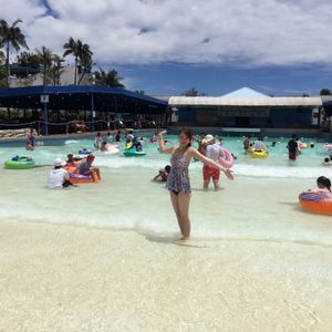 ハワイを訪れているとき、8歳と10歳の女の子3人と一緒でした。彼女たちはウォーターパークが大好きで、いつものことから離れた一日を過ごしたかったので、ウェット・アンド・ワイルドのデラックスパッケージを予約しました。バスのピックアップは便利で時間通りでした。到着すると、少し混乱があり、バスを一台ずつ「荷下ろし」して「チェックイン」しなければなりませんでした。この15分の遅れの後、トートバッグ(タオルや服を入れられるまあまあ良いロゴのショッピングバッグ)が渡され、パークがオープンしました!私たちは「プライベートボディボードレッスン」を楽しみました。これは基本的に波のプールへのプライベートアクセスで、30分間利用できるもので、非常に価値があります!アトラクションは宣伝通りで、ウォーターパークとしては非常に良いものから優れたものまであります。大きな落下が好きなら、フライング・ハワイアンがオススメです!含まれているバーベキューも価値があります:良いサラダ、フルーツ、ホットドッグ、バーベキューの鶏肉とビーフストリップスがあり、食べ放題です。これは大きなポイントです。なぜなら、パーク内に食べ物を持ち込むことができず、何かを買う必要がある場合、長い列に並び、フライドポテトとハンバーガーに15〜20ドルかかるからです。無制限のソフトドリンクもお得です(スナックバーの「レシート」ラインに行くと、大きな列をスキップして購入でき、飲み放題です...道中用に1つ持っていくのを忘れずに)。ロッカーが必要ですが(14〜19ドルで、5ドルが返金されます)、他はすべて含まれています。非常に楽しい一日で、価格に対して良いお得感があります。デラックスパッケージにプレミアムを支払う価値は十分にあります。