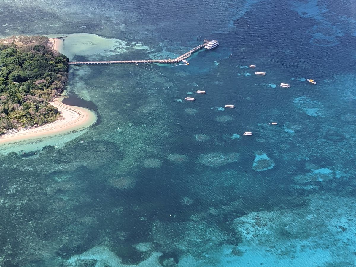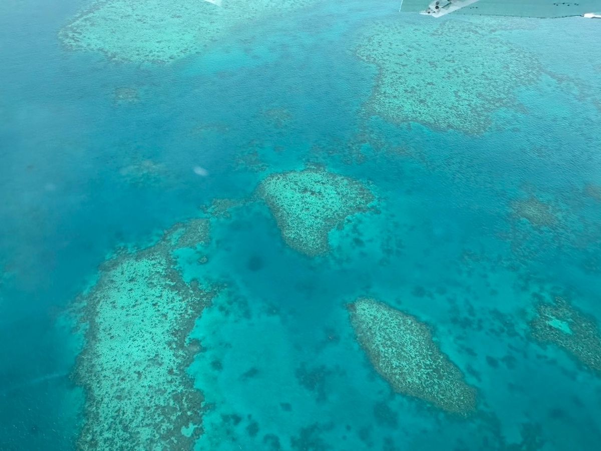 前日にシュノーケルを楽しんだのですが、上から見るグレートバリアリーフは、また違う美しさでした。