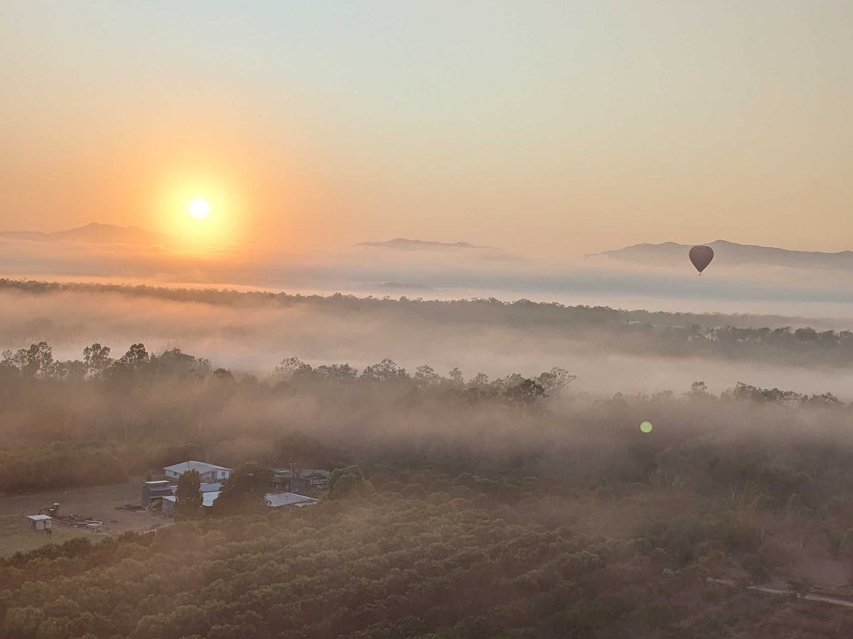 少し霧は残るものの逆にその風景が本当に幻想的で、静かな中朝日を眺める時間は夢のようでした... 地上に近づいてワラビーを見えるようにしていただいたり、畑で育てられているフルーツなどの説明もあり、オーストラリアならではの気球体験だと感じました。