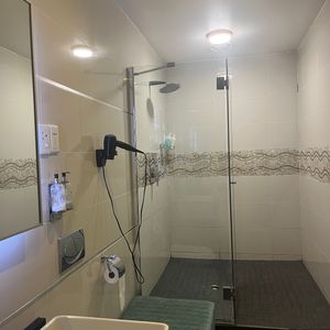 シャワー室もきれいで、シャンプーやボディーソープ、ボディークリームも完備されていました。ドライヤーが故障していましたが、受付の人に頼んで違うシャワールームのドライヤーを使用させてくれました。