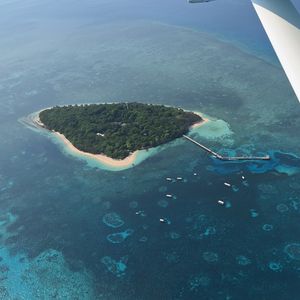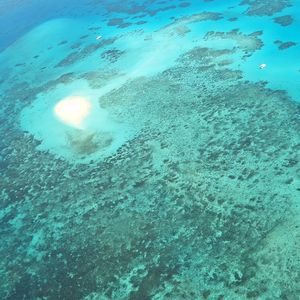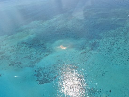 空から眺めるグレートバリアリーフは、期待を遥かに上回る蒼さでぐっと引き込まれました。