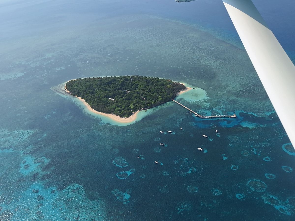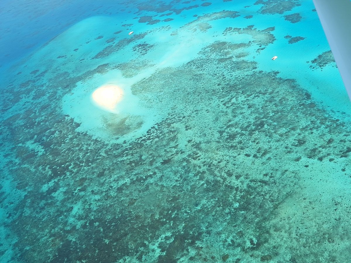空から眺めるグレートバリアリーフは、期待を遥かに上回る蒼さでぐっと引き込まれました。