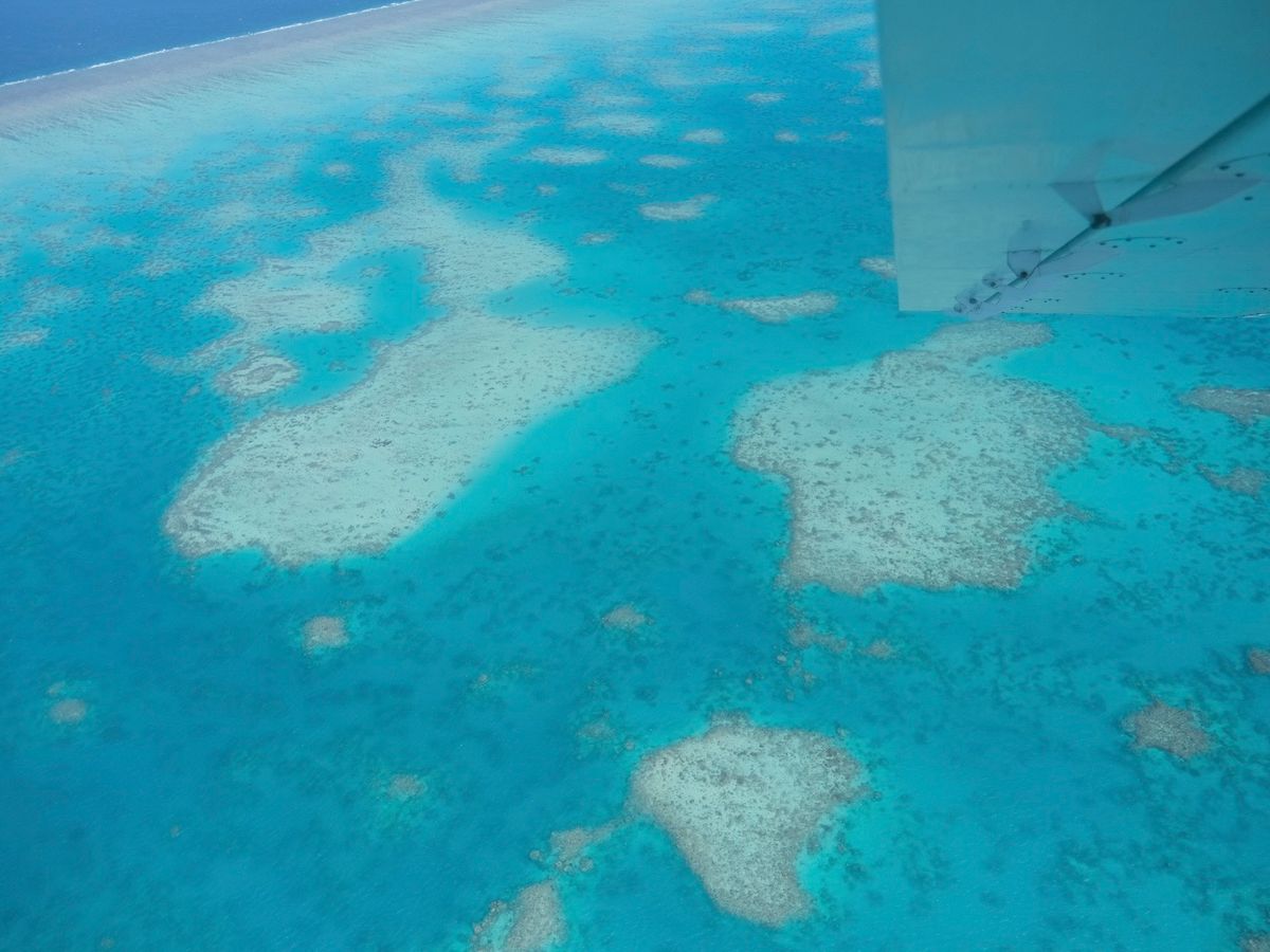 空から見るグレートバリアリーフは、想像以上に綺麗で圧巻でした...