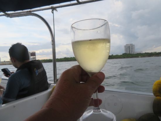 サンセットは寒いので、船の中で少量のフルーツと少量の暖かいお茶をいただきました。