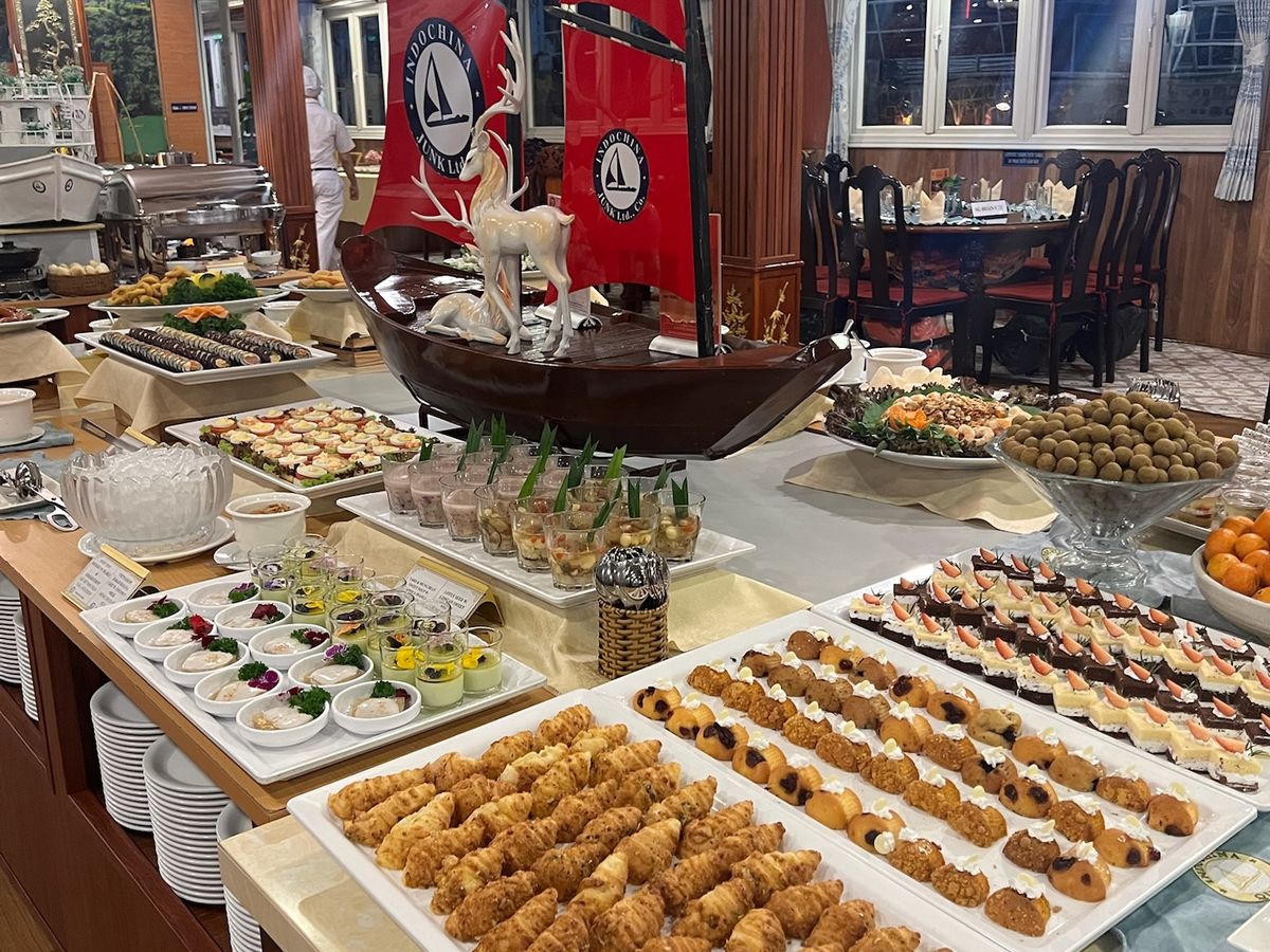 ひとり参加でしたが、行き帰りのバス内は(ガイドさんの話も聞きつつ)基本的に爆睡するだけですし、船内での飲食やボート乗船の際に自然と他の参加者の方々と会話することになり、寂しくはなかったです(笑)。ハロン湾のクルーズは一切揺れることもなく、とても穏やかで優雅な時間でした。海鮮をメインとしたご飯も、意外と?イケました(かなりボリューミーでした)。鍾乳洞観光なども含め、1日にたくさんのことがギュッと詰まった良いツアーでした。楽しかった♪