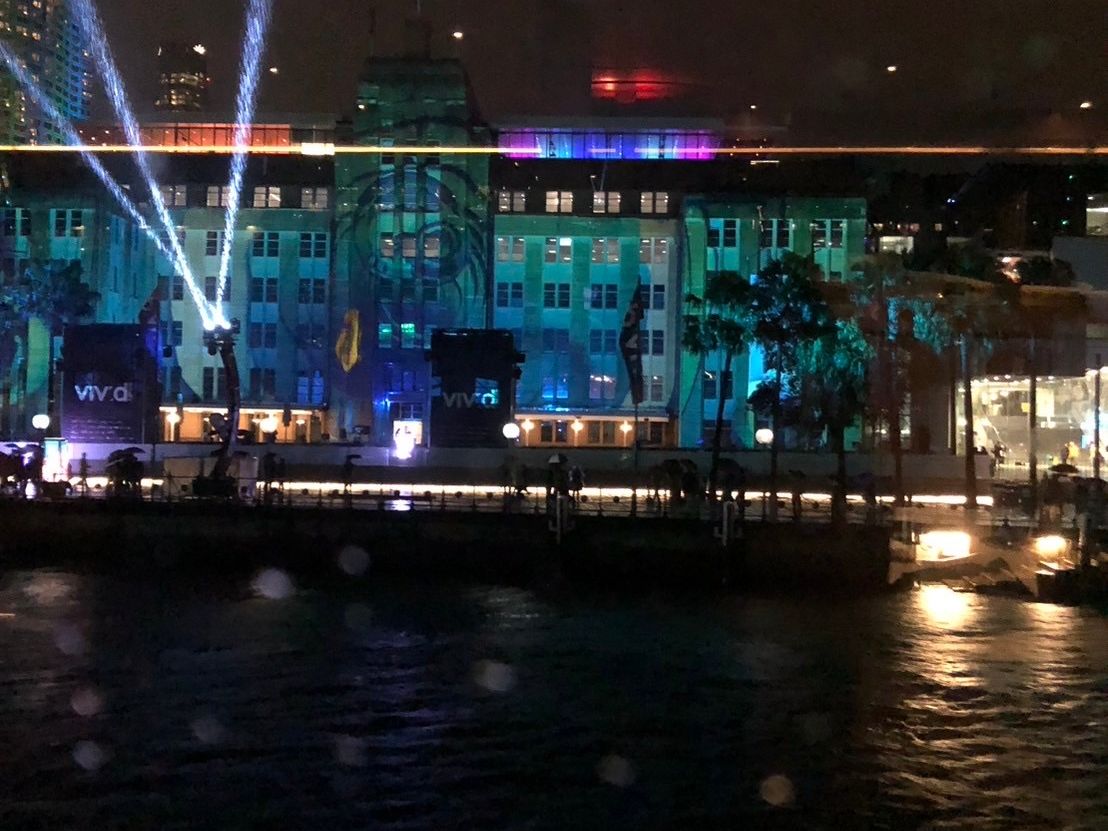 街はvividシドニー真っ最中で、船から見る