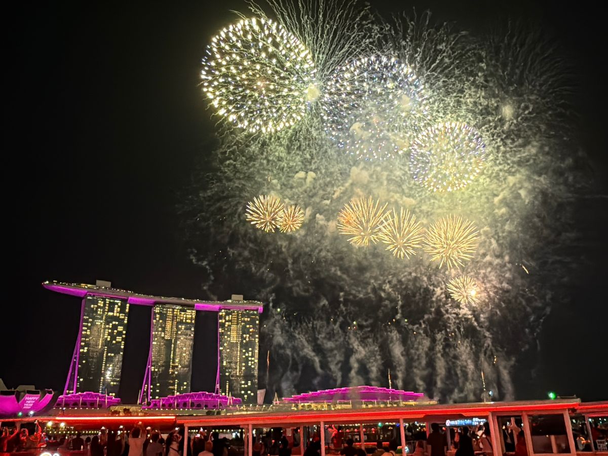 シンガポール川の船上という最高のロケーションで、マリーナベイサンズ上の新年の花火を見られるのは、このプランならではだと思います。パンダバスの日本語ガイドさんは、話も面白く、家族5人の写真を何枚も撮ってくださるなど、大変親切でした。