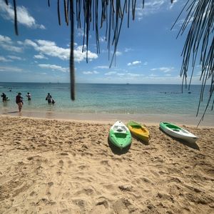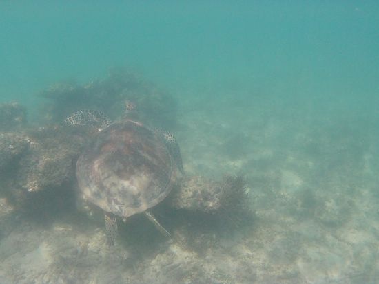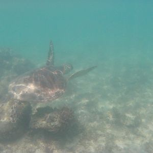 13時30分:ここから15時くらいまでは私たちは自由時間だったので、ずっと海で何かしらすることにしました。(14時くらいから島内散策ツアーに参加している方もいました。)私たちは初めのシュノーケリングでウミガメを見ることができなかったので、リベンジのためにもう一度挑戦することにしました。他のツアー参加者の中に、もう既にウミガメと遭遇した、という方がいらっしゃったのでその方にどこに居たかを聞いて、その辺りを探してみました。が、なかなか見つからず海の中を右往左往しました。すると砂浜にいたNanamiさんが、砂浜からウミガメを見えたらしく、私たちのウミガメ探しに協力してくれました!Nanamiさんの助けを借りながら捜索すること約10分、ようやくウミガメに遭遇できました!しかも思ったよりも大きくて驚き!!これだけでケアンズにきたかいがありました🐢Nanamiさんさいこう。そのウミガメはすぐにどこかに行ってしまいましたが、約15分後、もう一度ウミガメと遭遇できました!(←これもNanamiさんのおかげ)そのウミガメは泳ぐスピードがゆっくりだったので、数分間一緒に泳ぐことが出来ました!この日のために買った防水カメラも活躍したので買って良かったです📸シュノーケリングは大満足したので、最後に、やったことがなかったサップやボートを軽く乗って終了しました。サップやボートも無料で自由に好きなタイミングで使えました。