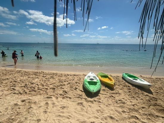 12時00分:アクティビティ開始。私たちはまず、45分程度のガイドシュノーケリングに参加しました。このガイドシュノーケリングか半潜水艇か選べましたが、私たちこちらを選びました。私はシュノーケリングは初でしたが、ウェットスーツのうえからライフジャケットも着ることができたので、全く問題なく45分間楽しむことができました。このガイドシュノーケリングでは残念ながらウミガメは遭遇できませんでしたが、ニモやなんかよくわからん綺麗な魚などをみれたので満足でした!