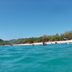 11時30分:島に到着!島に着くと、ビーチが綺麗すぎてびっくりしました。荷物は屋根がある日陰に置いて、すぐにアクティビティ関連や昼ごはんなどの説明がありました。この際も先程と同様に日本人ガイドのNanamiさんから日本語での説明がありました。説明の際に、たまたま海からウミガメが顔をだしたのがらみえて、早速テンションが高まりました。ちなみに、島でのトイレは自然に還すか仮設トイレのようなもので用を足すかの基本的に2択、というような説明がありました。私は自然に還しました。