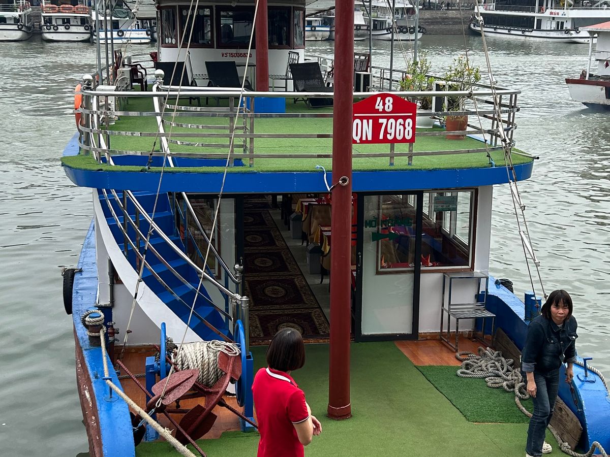 乗船後は その日2回目のクルージングと見えて 散らかっていました。元々新しくない船でお世辞にまで綺麗とは言い難い。料理もケイタリングサービスで整えたレベル。