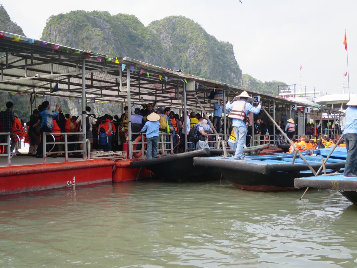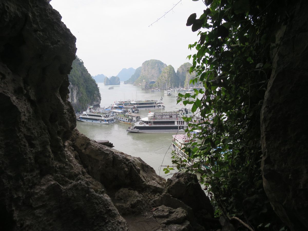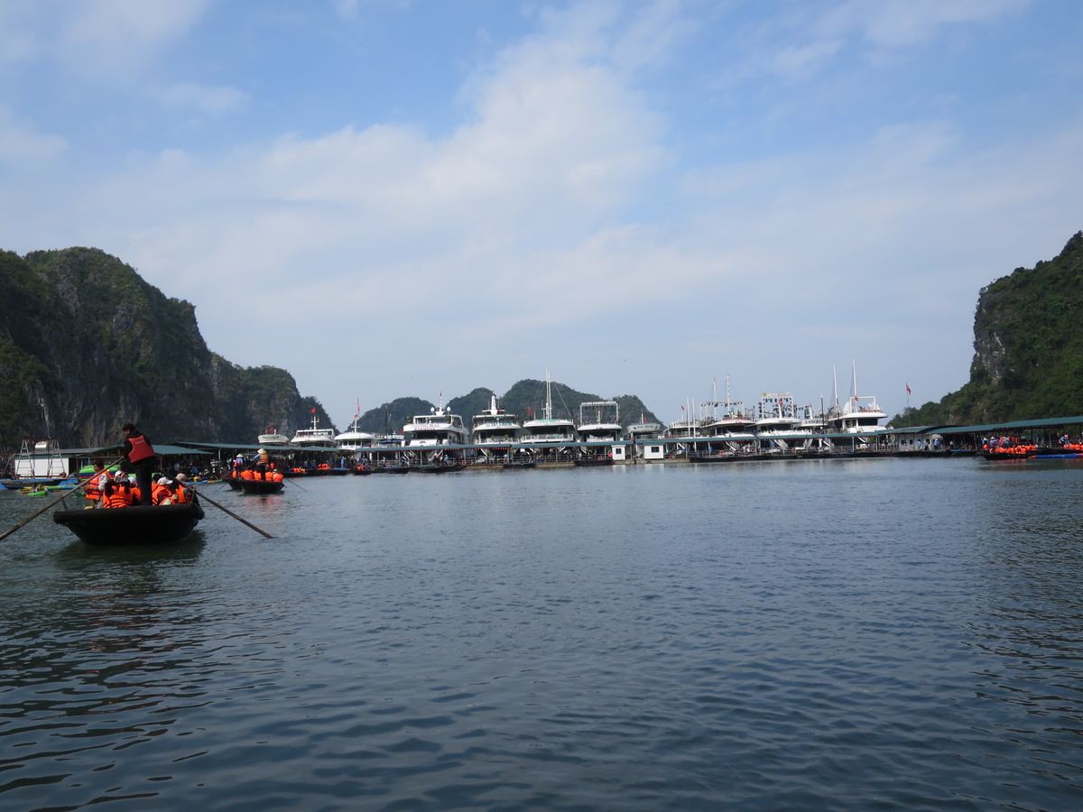 継続して世界遺産に認定されているだけあって壮大で迫力があり、ツアーもクルージング、充実した船内でのベトナム料理を堪能、上陸して、狭い湾については別のバンブーボートもしくは、カヌーで見学、鍾乳洞の徒歩見学、その後別の島で自力で展望台に上り、帰りのサービスエリアで夕食と盛りだくさんだった。残念なのは、いま一つ担当のガイドさんが積極的ではなく、質問すれば答えてくれるが自分からうんちくを語る場面が(期待していたのですが)あまりなかった。特に同じツアー会社のもう一つのグループ(クルージングだけは合同)のガイドが非常に元気でアグレッシブだったので、余計に残念感が出てしまっていたように思う。