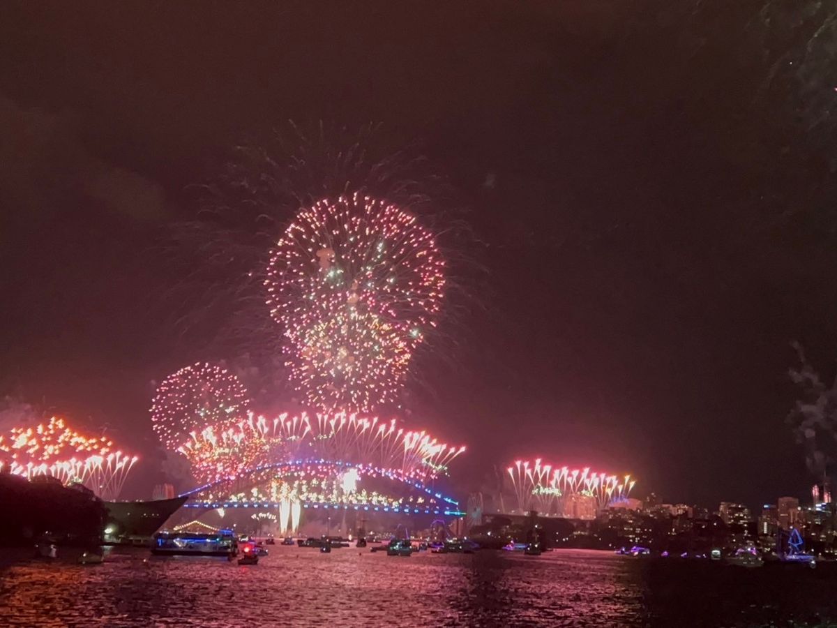 夫とふたりで大晦日に、参加しました。コース料理は多すぎると思ったので、ビュッフェにして、好きな物を少しずつ食べることにしました。ウエルカムドリンクのマイタイはオレンジベースですごく美味しかったです。夕焼けの写真をデッキで撮ったあとは、お食事タイム。順番に言われたテーブルの人が取りに行くので、混み合った感じはしませんでした。サラダと、メインはチキンの照り焼きっぽいのと、白身魚のココナツカレー煮、そしてその場で切り分けるローストビーフでした。ローストビーフは、味付けをいろいろ選べて、醤油もありました。豪勢な、という感じはしなかったけど私たちはお腹いっぱいになり大満足。ケーキやフルーツもありましたよ。私たちはオプションで事前に赤ワインを1本注文してあり、ちゃんと食事時に届きました。その後は、ショータイム。きっと30人ごとぐらいにショーをやって次々まわってくるのでしょう。