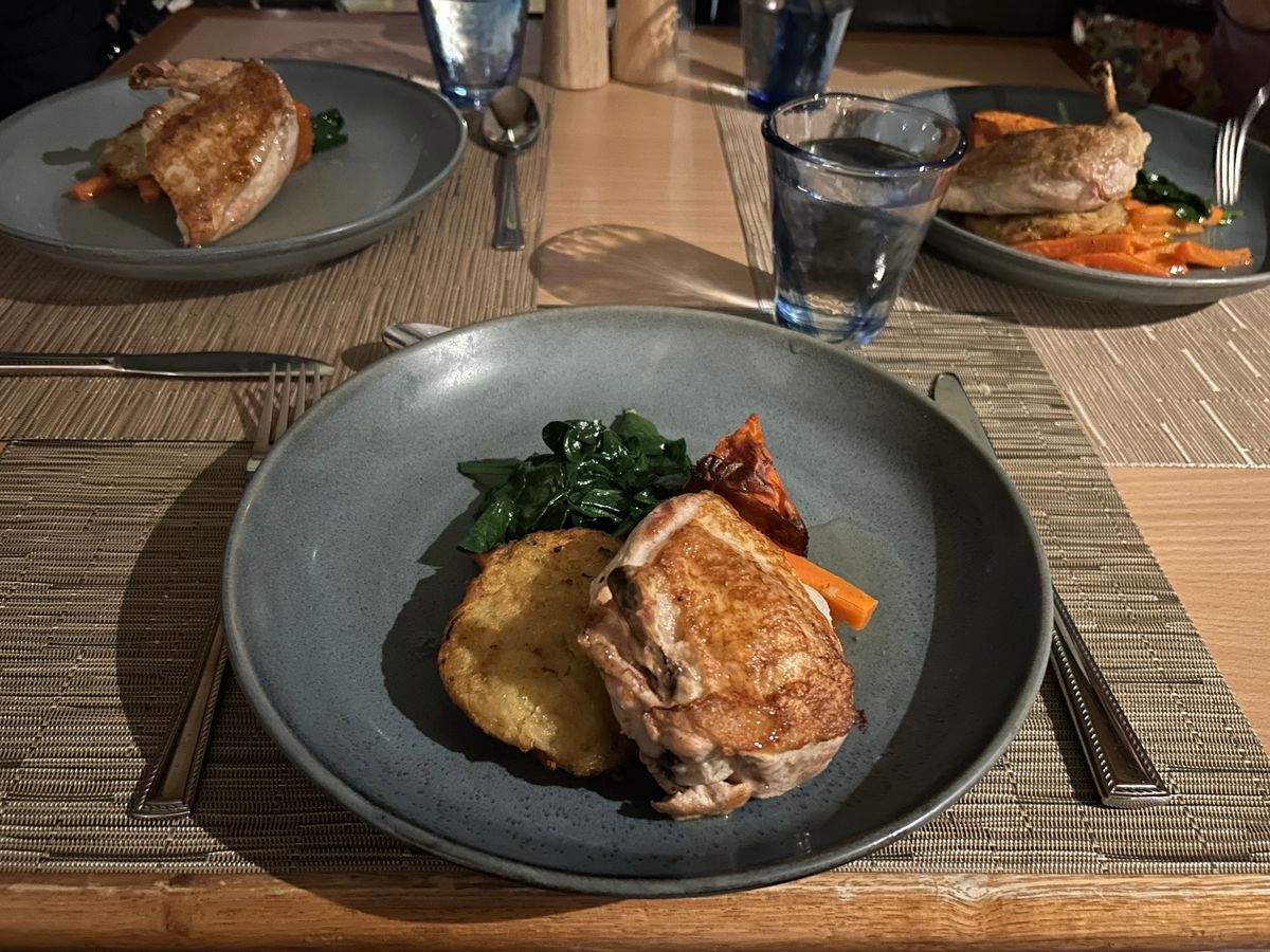 窓際の席でゆっくりと食事を楽しめました。サラダなどの生野菜もフレッシュで、メインのチキンが柔らかくてびっくりしました!