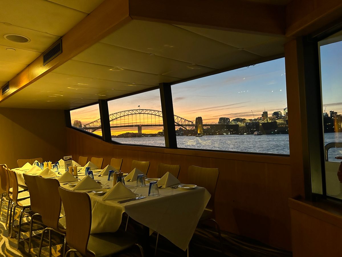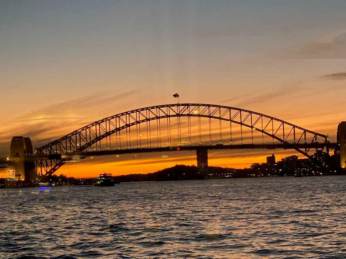 ちょうどハーバーブリッジに夕日が重なり、とても綺麗でした。デッキに出て海風を感じることもできます。オペラハウスや街並み海から見ることができるので地上から見るのとは違った魅力を感じることができました!