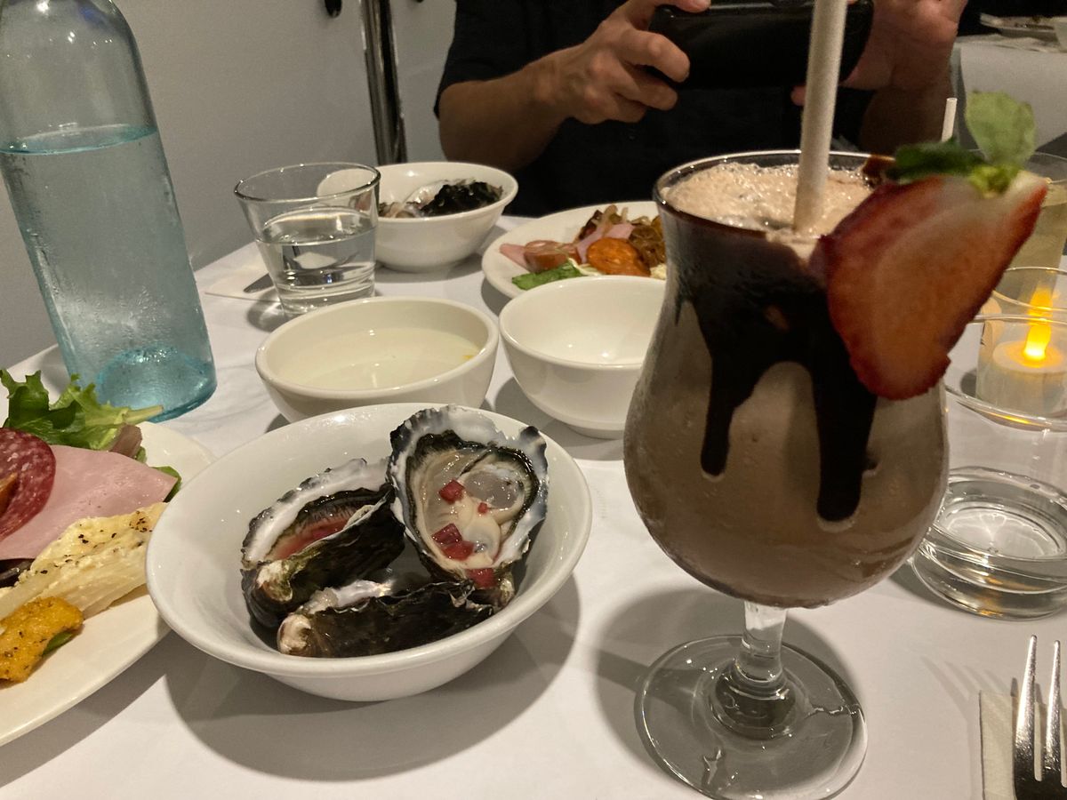 地元民が主体の客層で、日本人観光客向けに小さい皿が沢山出るのでなく、ボリュームのある皿が出てよかった。サーモンタルタルにザクロやマンゴーを合わる発想は日本人にはない。とても良い。エッヘル塔のシァンペンシァワーに合わせて屋上に出られる航行スケジュールは良い。うるさい観光案内がないので良い。