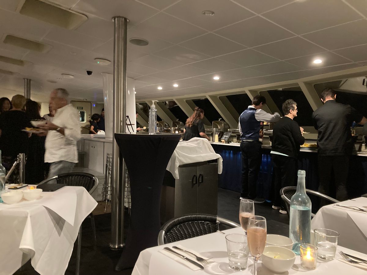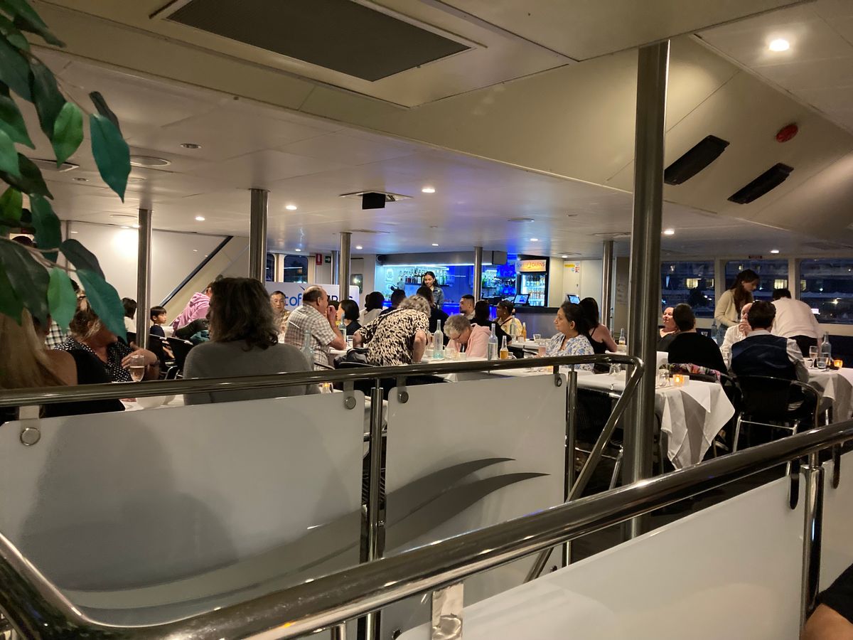 すごく素敵な体験でした!送迎付きプランにして、行きも帰りも快適でした。船に入ってすぐにチーズやフルーツが食べ放題で、ドリンクもすぐ出してもらえましたが、南国風のドリンクを頼んだところ甘すぎて飲めませんでした。普通のシャンパンとかにすればよかった。でもご飯は美味しいしダンスも歌も楽しいし最高でした!