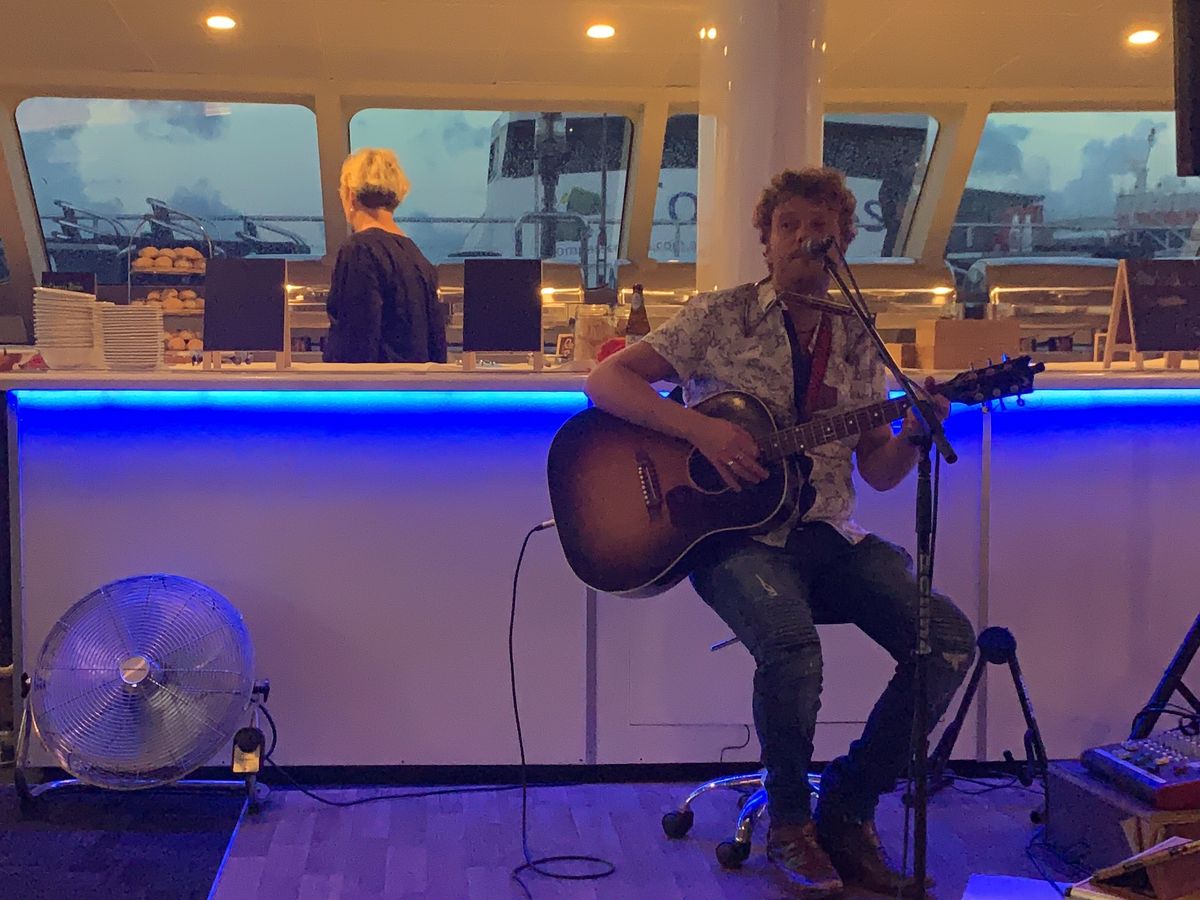 ケアンズの夜を感じられる良い雰囲気の船でした。食べ物も美味しかったです。特に牡蠣や海老などのシーフードは格別でした。また、お米や焼きそばなどもあり日本人でも喜ぶ食事がありました。他の席では誕生日パーティーをやっており、豪華な装飾がして楽しい感じでした。最初にウェルカムドリンクもあり、美味しくお得感がありました。私は船酔いをし易いですが、何事もなく終わり良かったです。日本人の案内人の人もおり、困る事なく楽しめました。