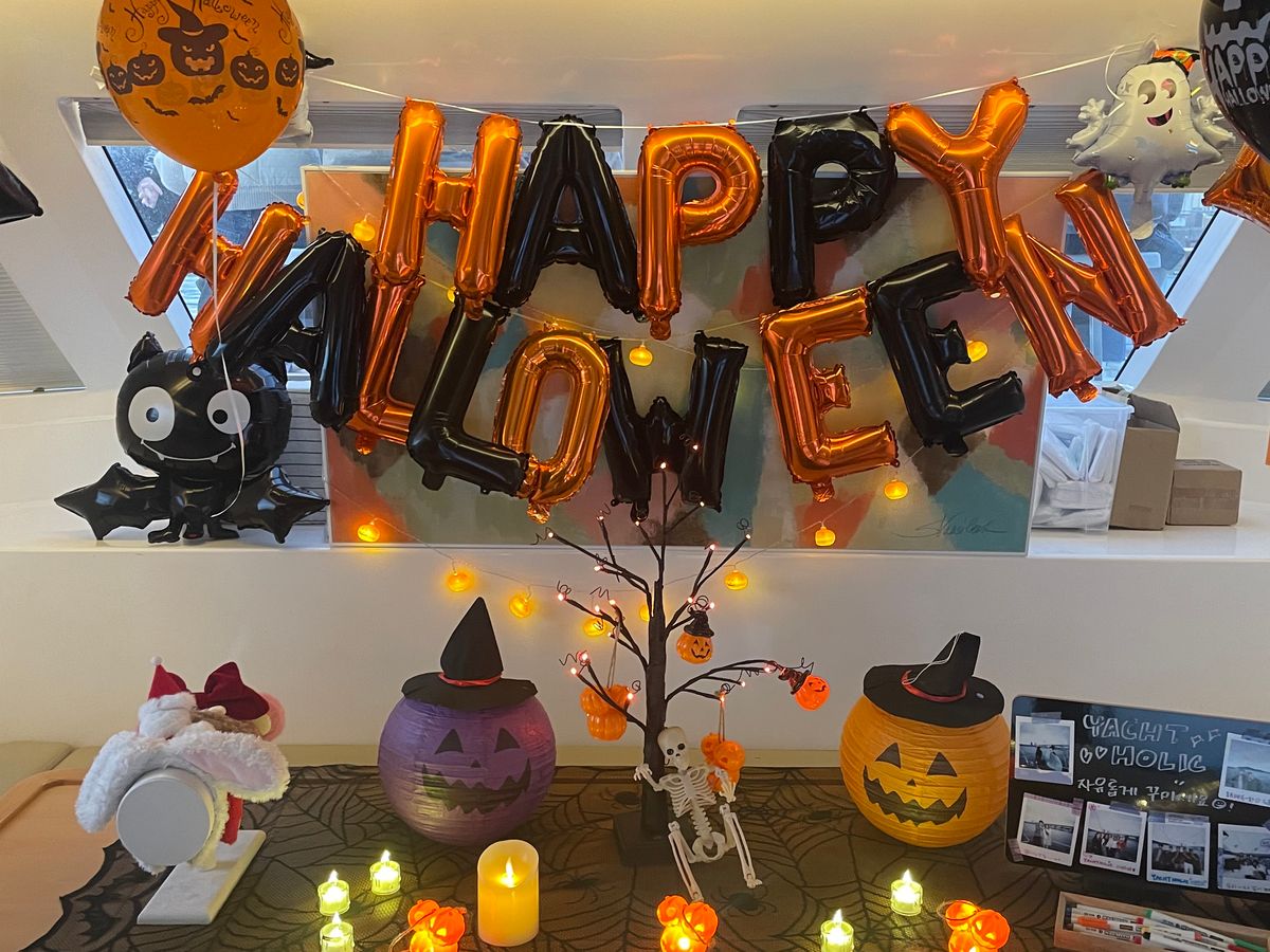 船には無料のビールやソフトドリングやスナックもありますが、少し波があって揺れる日だったので控えました。スタッフさんはとてもフレンドリーで元気が良く、写真もたくさん撮ってくれます。ハロウィンやクリスマスにはデコレーションもするとのことでフォトスポットがありました。