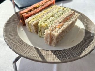 紅茶はいろいろ選べるので、ちょっと甘酸っぱいハーブティーにしました。ケーキがすごく甘いところが多いのですが、ここはそんなこともなく普通にたべられました。サンドウィッチもちょっと日本には無いようなフィリングで美味しかったです。船はそんなに揺れないし、席から離れてガラス張りの先頭とかで写真も撮れて、大満足のクルーズでした。
