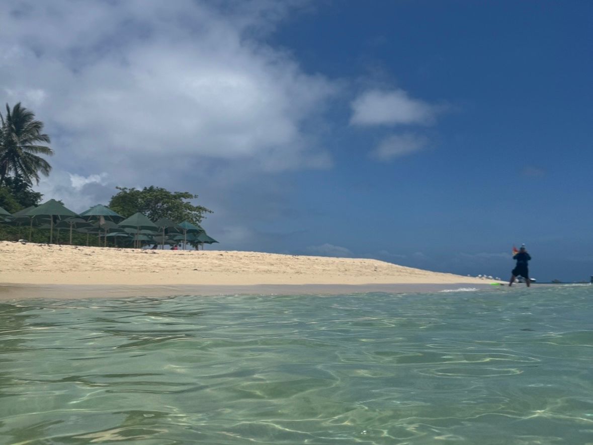 浅瀬でも魚は見えるので、ある程度泳げる方はシュノーケリングで楽しめると思います!