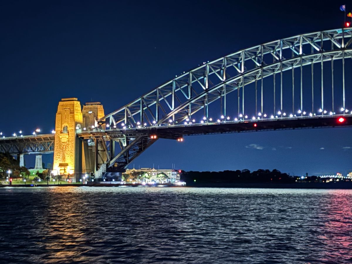 母親の希望でシドニー港の夜景を見ながらディナーを楽しみました。船も美しく、生演奏を聴きながら前菜、メイン、デザートとそれぞれメニューから好きな物を選べました。メインのボリュームがしっかりあり満足できました。窓際確約で食事をしながらでも夜景が美しかったですが、デッキに出ると更にきらびやかなシドニー港の夜景を満喫できます。特に2階デッキにはカウチソファーがあり、ゆったりと座って過ごすことができ、良いシドニーの思い出になりました。
