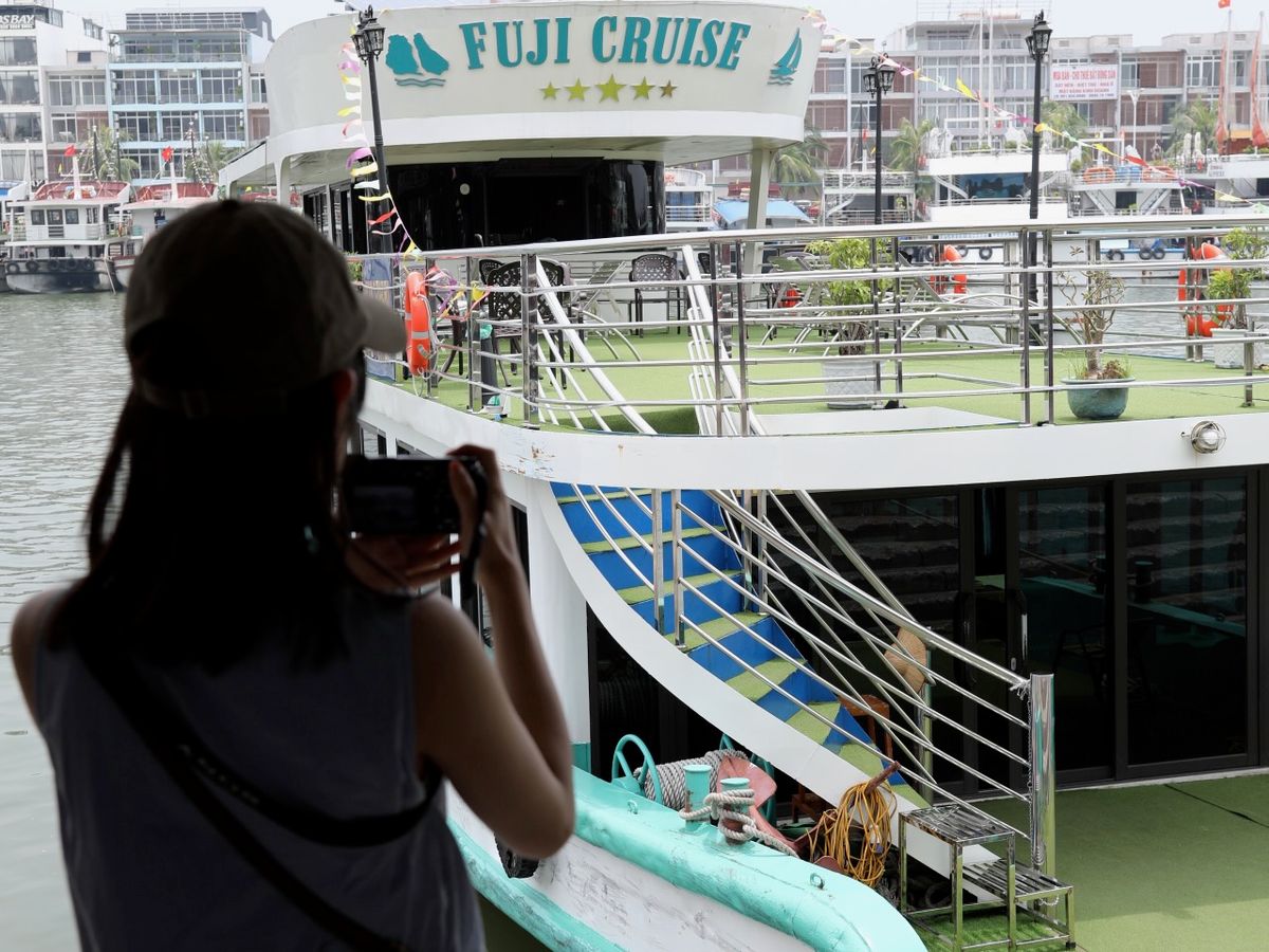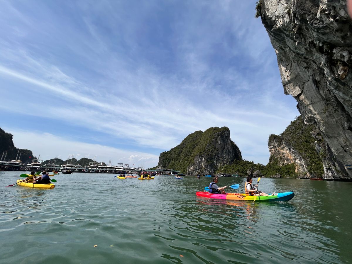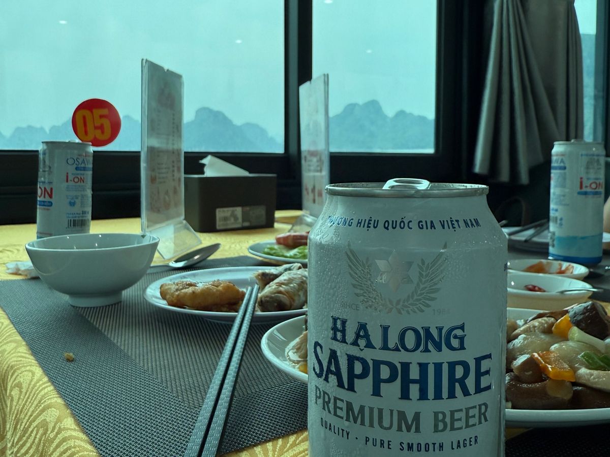 ハロン湾について日本人専用観光船 Fuji に乗りまずはランチ。相席ですがもう1組もお父さんと娘さんのコンビで居心地は良かったです。ランチの味もボリュームも満足。食後は元水上生活をしていたエリアでバンブーボート体験。Fujiに乗ってスンソット洞窟に移動して内部を探検。最後にティートップ島に行って山登り。気温がとても高い日だったので、特にティートップ島の900段の階段では全身から汗が吹き出すほどでしたが、船に戻ると冷たいタオルを用意してくださっていたので助かりました。また、とても手頃なお値段で水やビールを購入することができるので、こちらも助かりました。