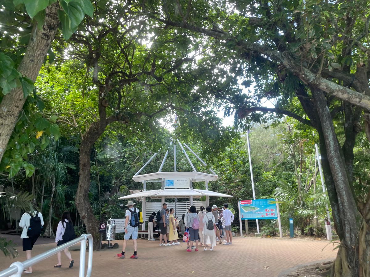 朝早くからケアンズのフェリーターミナルへ向かうと、カウンターにはかなりの行列ができていました。受付を済ませ、いざ乗船という段階になると、たくさんの観光客でごった返して列は無くなり、まるで早い者勝ちの様相に。窓側の席など、希望の席がある場合は、早めに並ぶことをおすすめします。