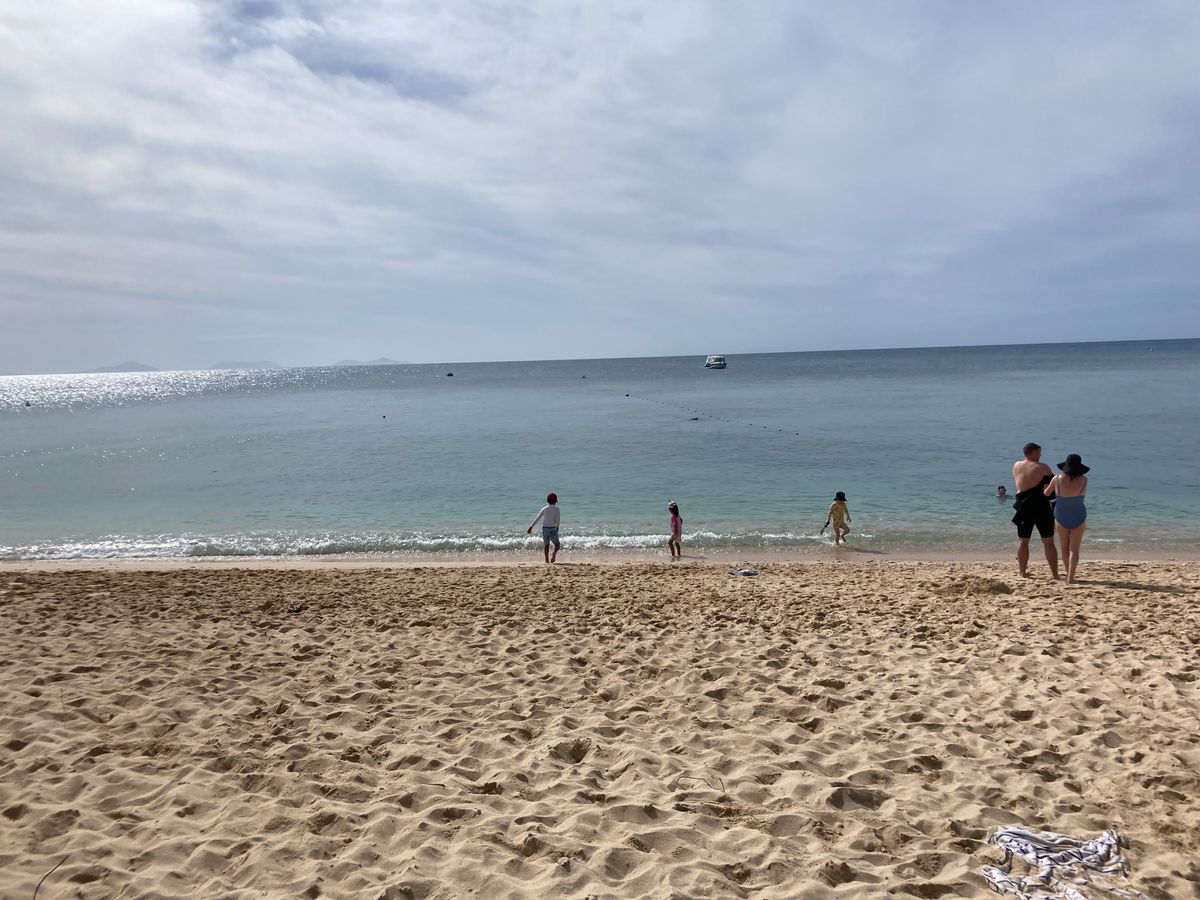 現地に着く頃には青空が出始め、暑くなって来たので海岸でパラソルを借り、そこでお昼を食べながら海に入るタイミングを計っていました。海の中はそれほど冷たくなく、ラッシュガードを着てシュノーケルを楽しみましたが、海から出たあと風が出て来だして寒くなり、何度も入ることは断念しました。