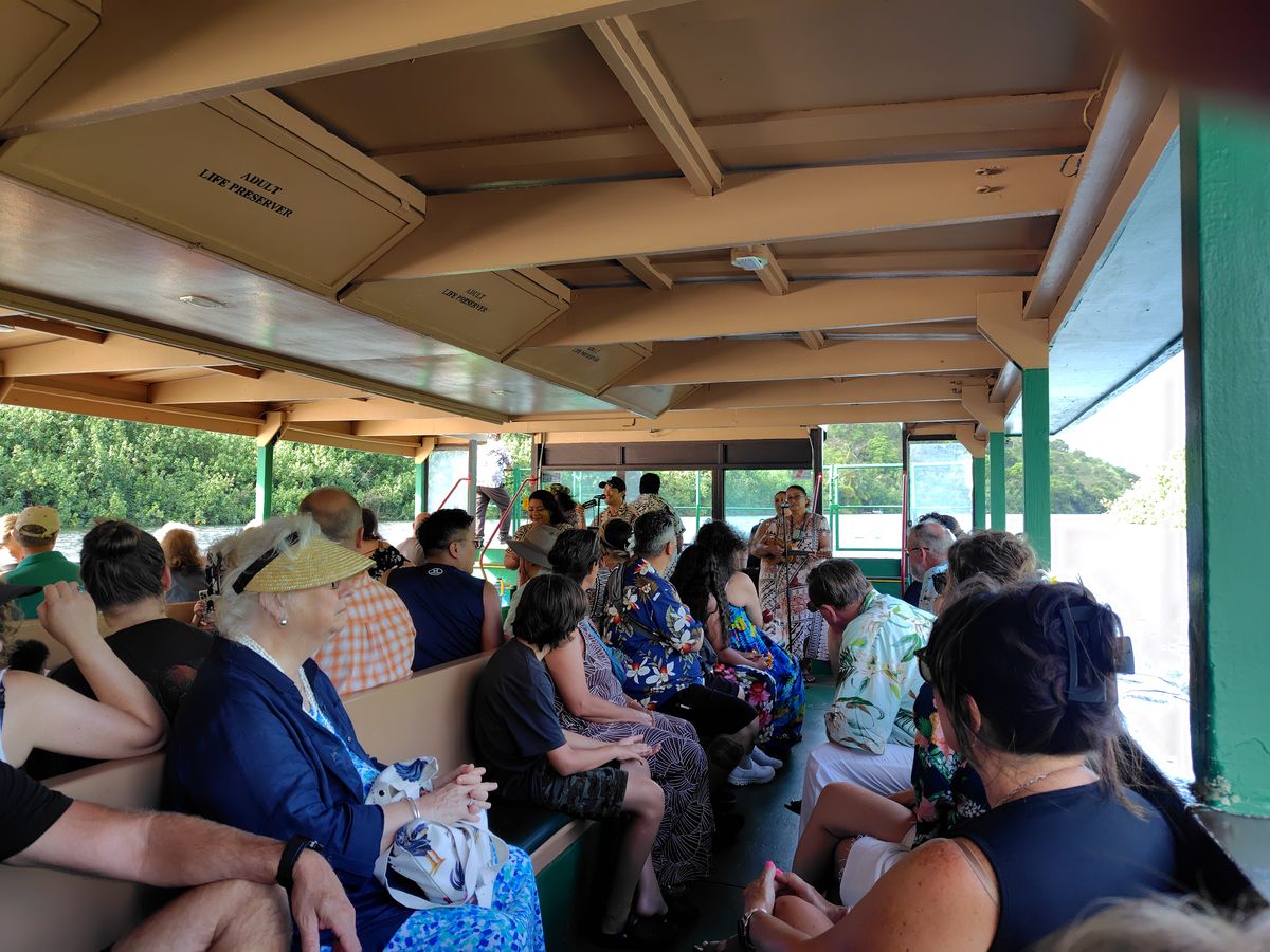 クルージングも ハワイを満喫できる内容でしたが 窓際席のテーブル間がすごく狭く 年寄りの私達は 腰も曲がりかけ 背も低く 通るのもやっとの巾でした。でも 海の色 ハワイアンムードには 大感激。お世話になりました。ありがとうございます。