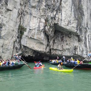 乗り心地の良いリムジンバス。ガイドのMr CUONGの説明通り鍾乳洞は寒くはなく天然ミストサウナの様。奥行きもあり見応えありました。シーカヤックも楽しせうでしたが、私達は手漕き舟。猿も見れて楽しかった。