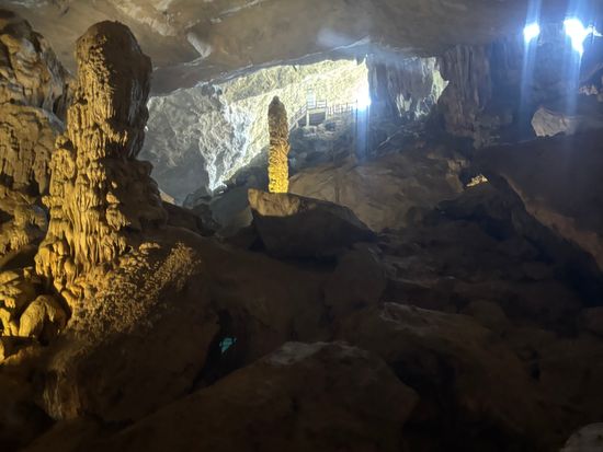 食事後の鍾乳洞見学は、高く、そして広大な空間に圧倒されました。ガイドさんが「あの岩は何の形に見えますか?」と、岩の形にまつわるユニークな案内をしてくれたおかげで、約15分という短い時間ながらも楽しめました。