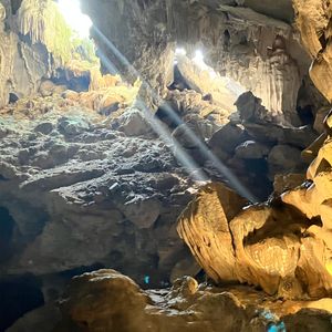 クルーズ前は雨でしたが乗船後、雨が止み、手漕ぎボートやティートップ島にも登れました。くもりでも景色良かったです。鍾乳洞も神秘的ですよ。