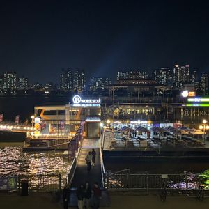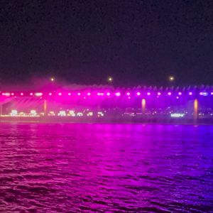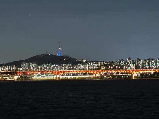船からの景色は陸から見るのと全く違って、夜景が美しくとても感動しました。蚕室から出発して汝矣島までをクルーズ。盤浦大橋が近くなってくると、レインボー噴水が見えてきました。船だとかなり近くまで行くので、それは素晴らしい景色を見ることがてできて、船に乗ってよかったと思いました。