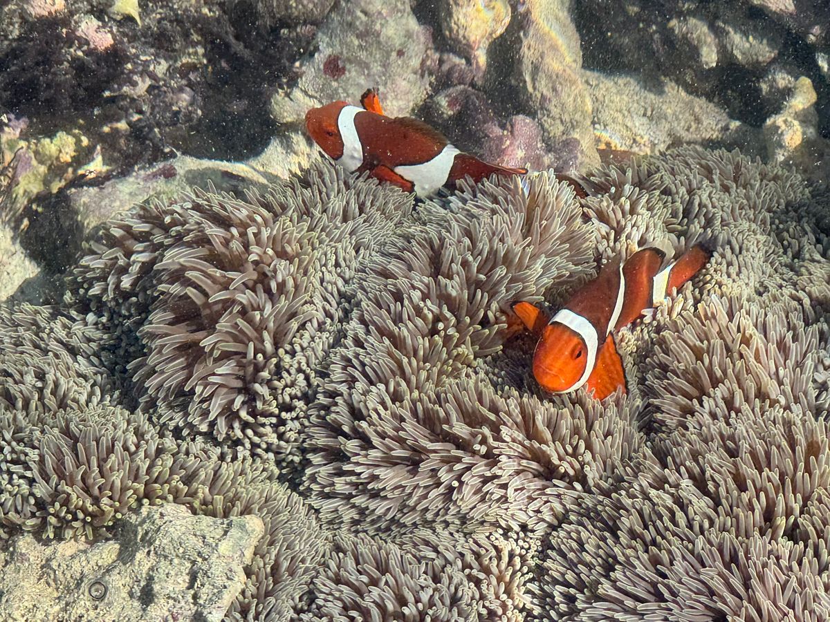 行きの船では、クロコダイル🐊に出会い、無人島ではガイド付きシュノーケルツアー🤿に参加し、美しい珊瑚🪸や魚、貝、ニモなどに出会えることができ、ゆっくりと楽しめました。友人4人で参加しましたが、半潜水艇、シュノーケリンクツアー、島内散策ツアー、サップと、個人のそれぞれのニーズを満足させてくれるツアーとなりました。