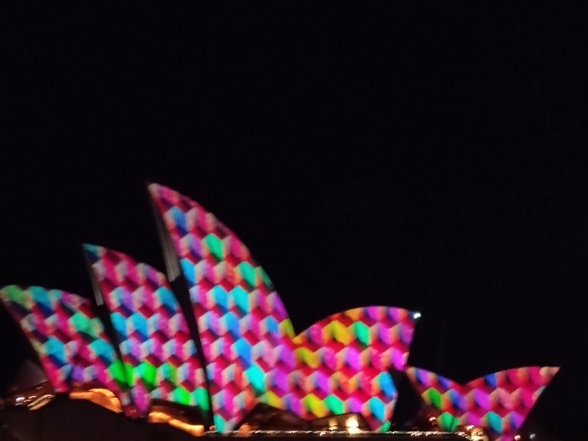 ビビット・シドニーは6月14日までの期間限定のイベントで、シドニー湾をライトアップするもので、最終日に体験しました。