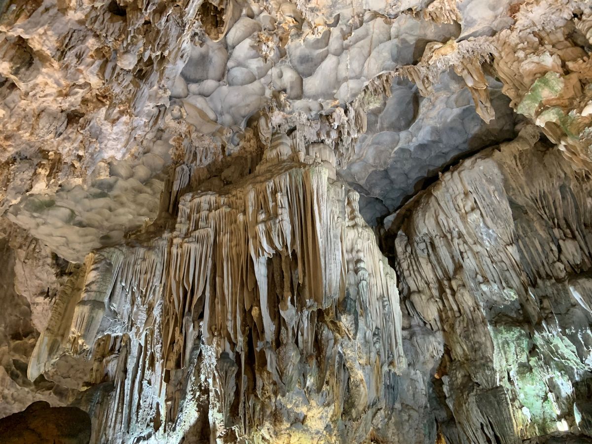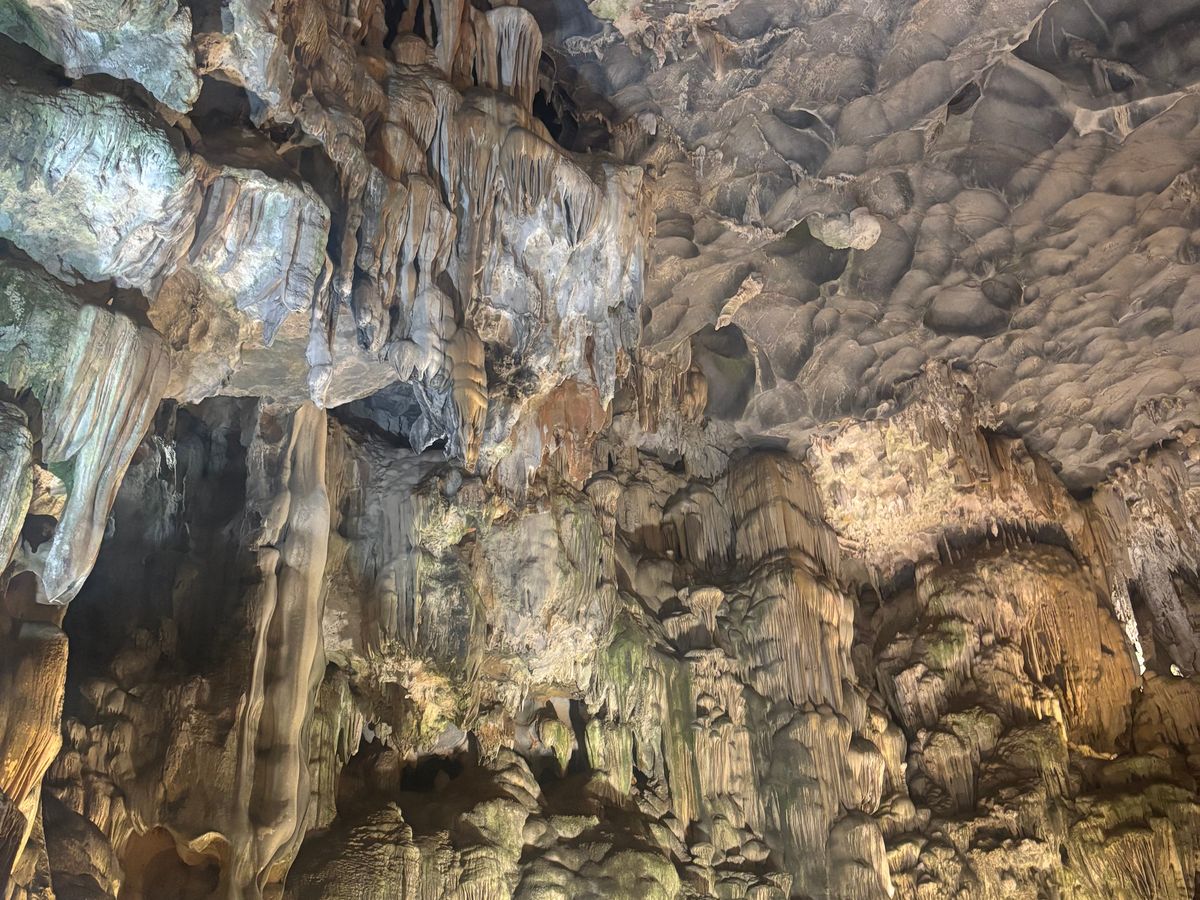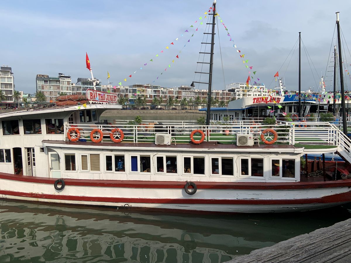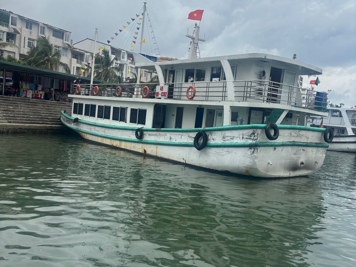 ツアーの流れは、ピックアップされてバスに乗り、ハロン湾についてから船へ。乗船後、昼食を食べながらクルージング。一段落すると、小船での散策と、上陸してからの鍾乳洞の見学。その後は、船で港に戻って下船し、バスで再び戻るという行程でした。ハロン湾は晴れていれば非常に快適ですが、曇りでもそこそこ絶景ですし、上陸してからの鍾乳洞も見どころ満載なので、多少天気が悪くても参加する意味はあります。
