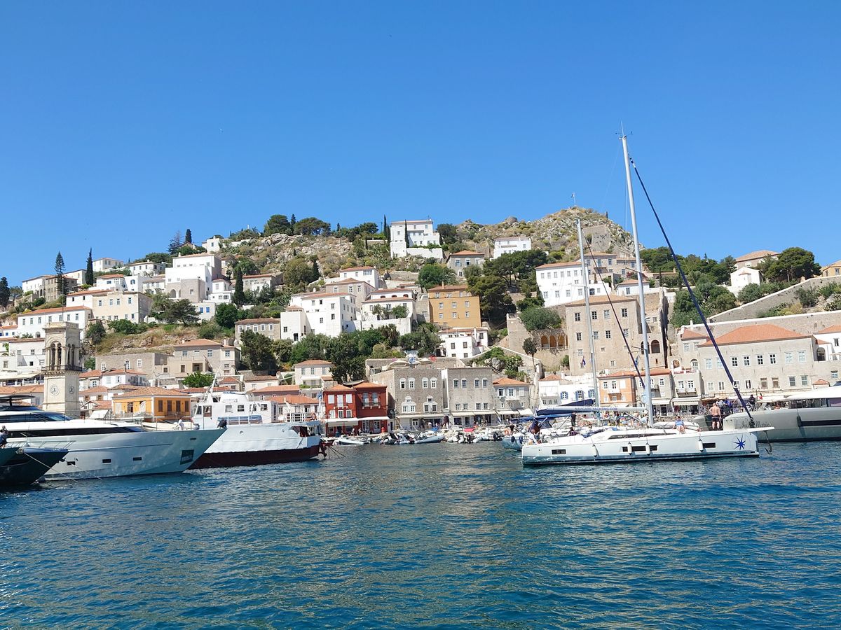 船への乗船は一番最後のグループ。席の確保等できない状態でしたので、乗船前、VIP席の販売をしていた女性を船内で探し、1人110ユーロのチケットを購入して、常時、アルコール以外、フリードリンク、10時前菜、13時3コースランチ、最初の島での島内観光付き、ベンツのバンでの各ホテルへの送迎付き権利を得ました。それから、各島から船に戻る際、長い列に並ぶ必要は無く、VIPリストバンドを見せれば優先的に乗船させてくれます。お陰で、ストレスの無い、お昼寝も出来る船旅と各島での観光を存分に楽しめるツアーとなりました。エーゲ海は、穏やかで空は青く、サントリーニに行けなかったのでプチサントリーニを味わえたようで参加して良かったと思えました。事前にチケット購入して無かったので、窓際のソファー席は満席で、固めの椅子のテーブル席になった事、行きのベンツのバンの送迎の権利が無かった事は、悔やまれます。