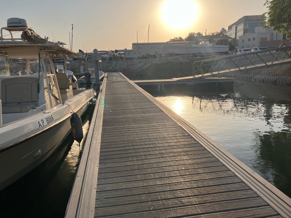 Emirates Toursのロゴが入った車でホテルに迎えに来てもらい、港に向かいます。小さな港には沢山のプライベートボートが停まっています。