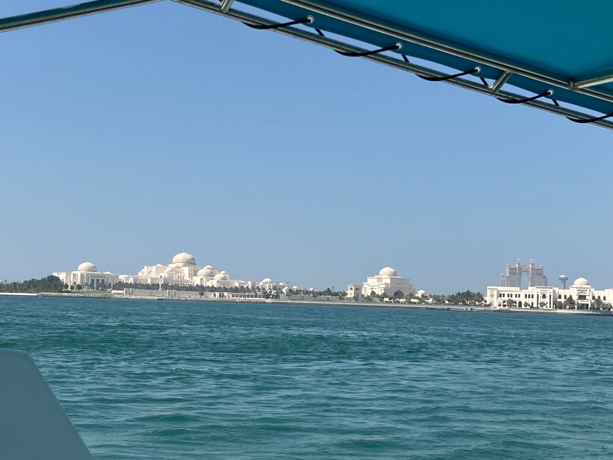 ボートに乗り込むと港を出発してすぐにアブダビの街並みやビーチが見えてきます。街の全景を見れるのは海のツアーならではの楽しみ方。