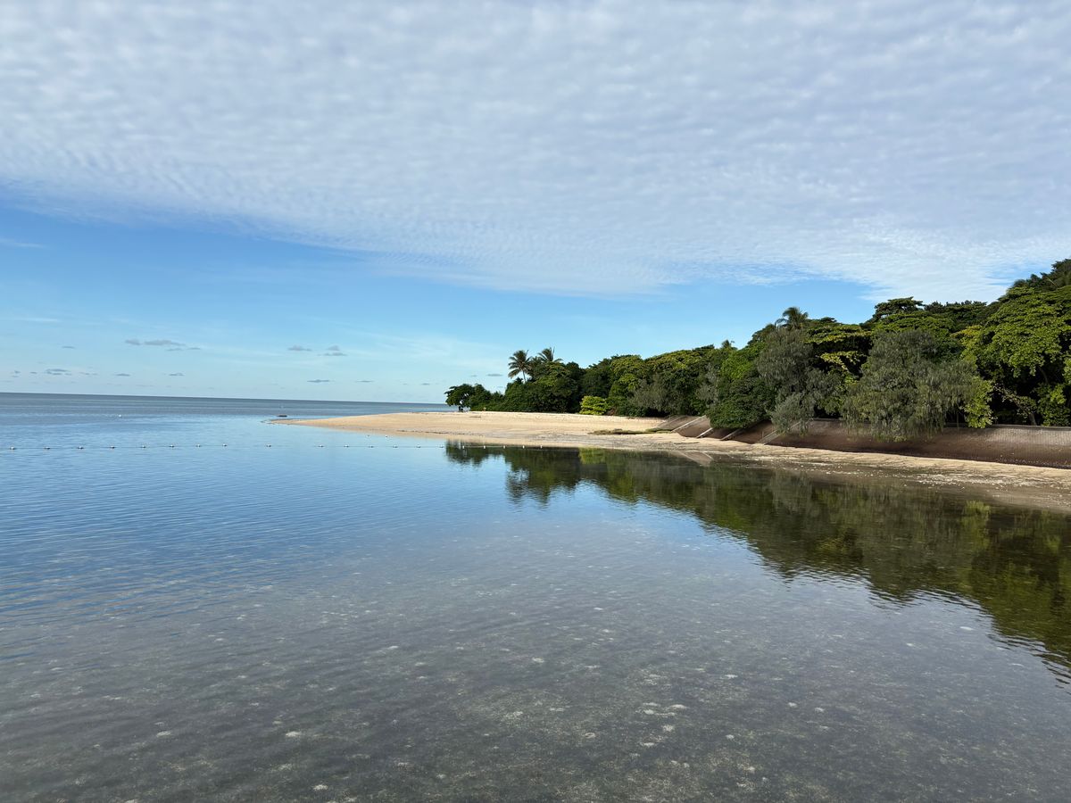 驚いたのは海の透明度と砂浜の白さでした。海は深さやサンゴで色が変わっていて、島の近くでは船が浮いてるようにすら見えるほど透きとおっています。