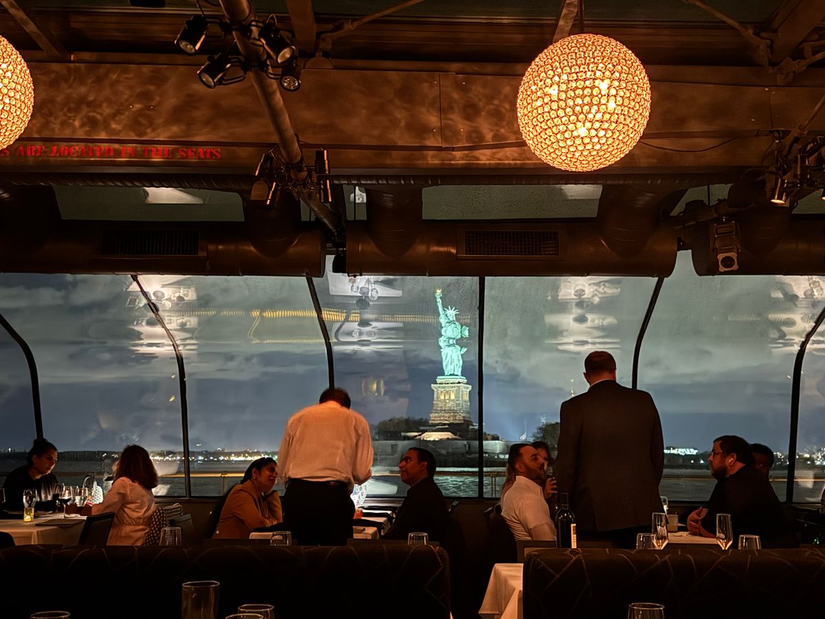NY訪問 6回目ですが最後のNYかと思い思い切ってクルーズに参加しました。今まで見たNYが全て海から眺められて雰囲気もよくお洒落で生演奏も素敵で最高でした。生憎の雨でしたが時折の晴れ間の時にデッキで素敵な夜景が楽しめました。写真はQRコードのデータでもいただけるとありがたかったです。