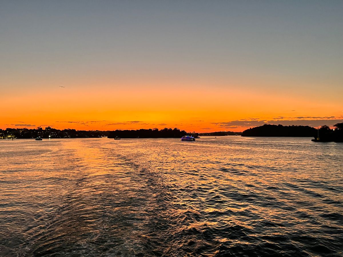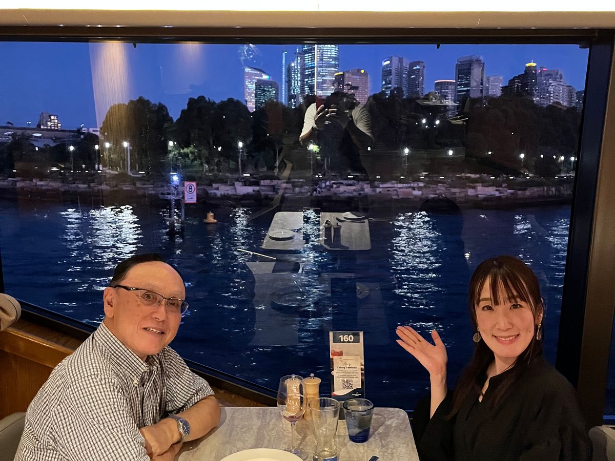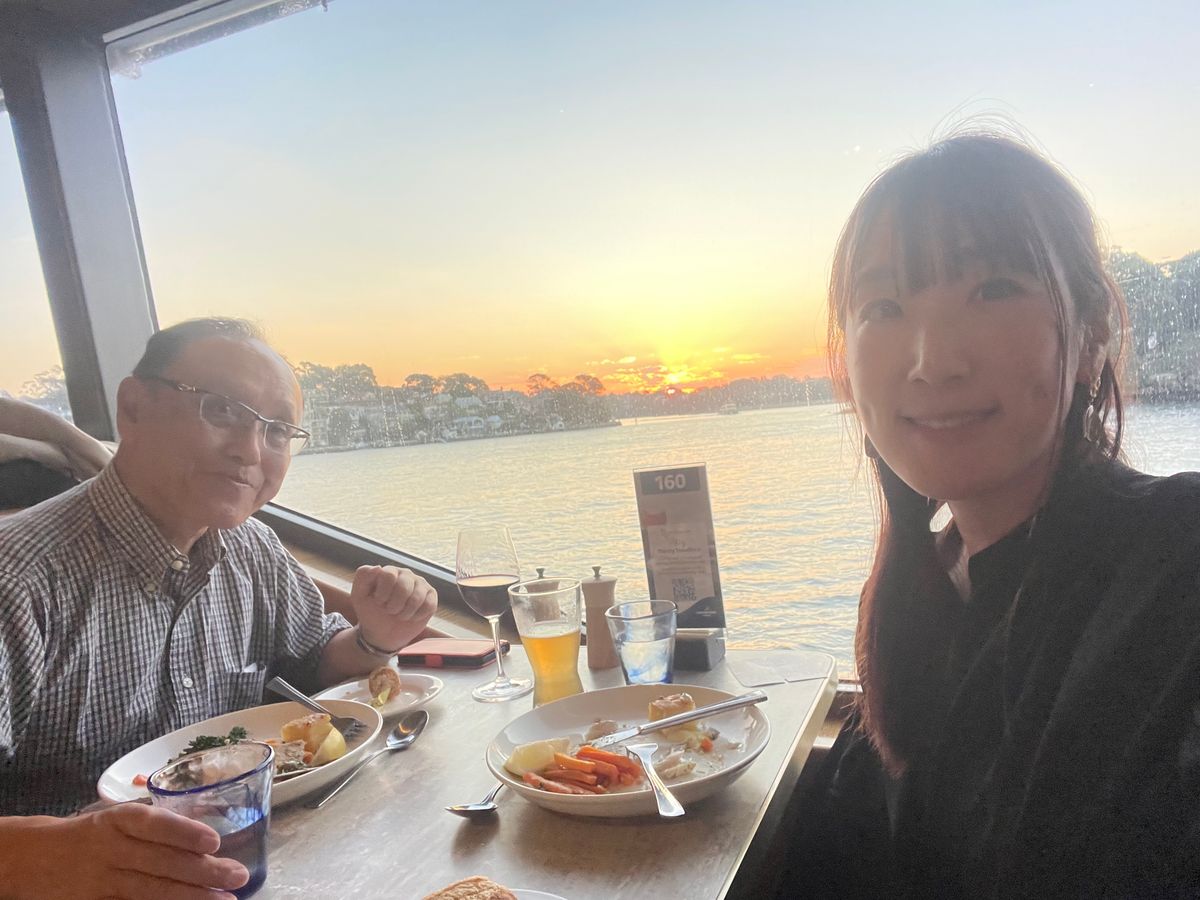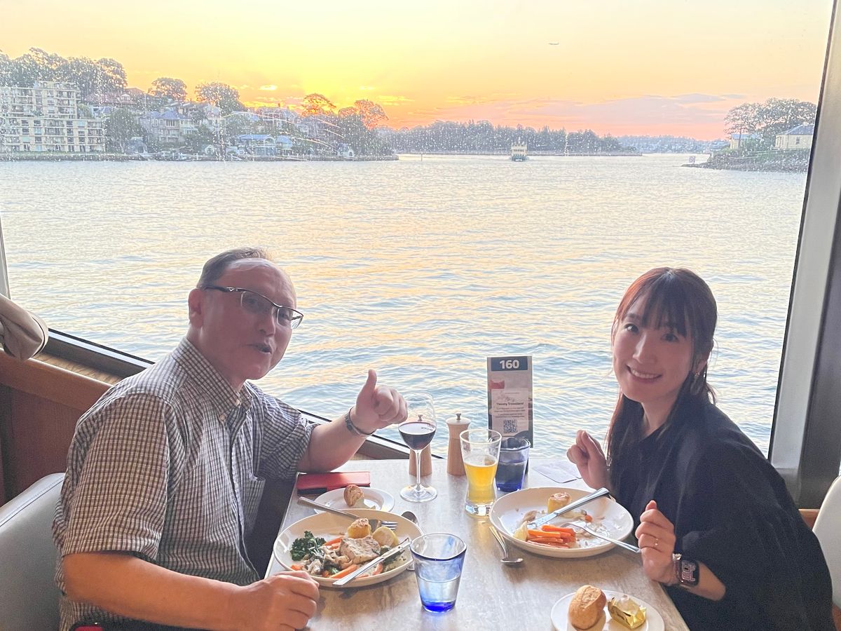 最高の天候に恵まれ、シドニー湾を滑る様に静かに進む豪華クルーズ船で、ゆっくりと沈む鮮やかな夕陽を眺めながら、上流のおもてなしでリッチなディナーとワイン🍷を堪能する贅沢なひと時を味わった!