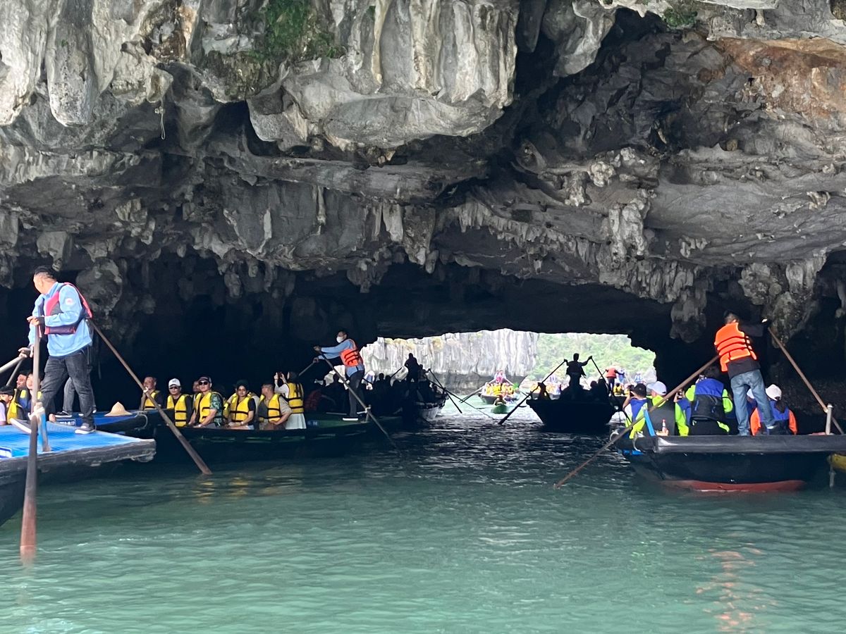 初めてのハノイ旅で日数が短かったので4時間クルーズに乗船しましたが、鍾乳洞の見学も良かった。8時間コースを知らないので4時間でも満足でした。1、2人参加だとクルーズ船ランチはほぼ相席になるようです。ベテランの女性ガイドさんでしたが、ベトナムの生活文化など女性目線での話しがとても面白かった。