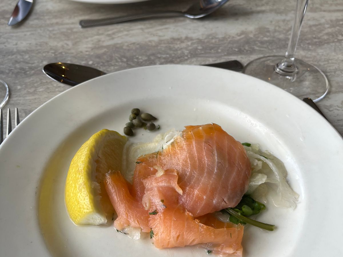 ローストビーフを食べている人を発見、室内に料理が見当たらない。寿司のフタッフに聞くとまっすぐ進めとのこと、フロアーから出て、エントランスホールに、なんとローストビールを切り分けるスタッフがいるではないか。これは見落とすところだった。シーフードも大海老とムール貝がオンデマンドで頂ける。ここは注意が必要。