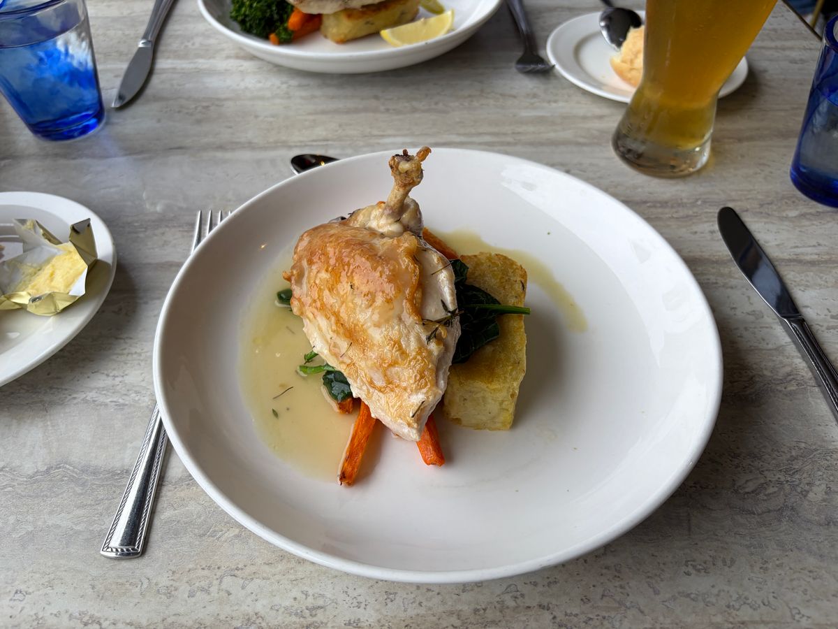 魚はパサパサで食べれたものじゃない。チキンはおいしかった。あとはデザートの白いクリームのケーキはよかったかな。