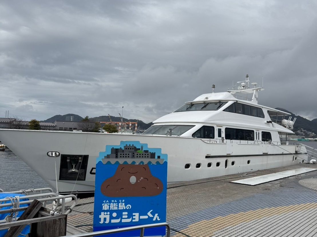 あいにくの天気で、上陸できるかできないか、行ってみないと分からない状況での出航でした。しかし、船内で、映像を見ながら、実際に池島で生活されていたガイドさんのお話があまりにも素晴らしく、上陸できなくてもいいとさえ思ってしまうほどでした。